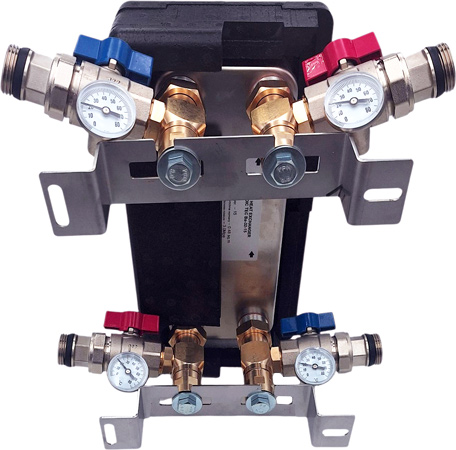 Un accesoriu opțional este suportul, proiectat pentru a agăța schimbătorul de perete. Suportul include racorduri filetate care permit orientarea ieșirilor schimbătorului cu un unghi de 90 de grade, rotibile în orice direcție. Din feedback-ul primit de la companiile de instalare, știm că acest accesoriu duce la o economie reală de timp și bani. La prima vedere, suportul poate părea costisitor, dar adesea se ignoră faptul că, fără acesta, este oricum necesar să se cumpere racorduri unghiulare și o formă de consolă de perete pentru schimbătorul de căldură. În consecință, achiziționarea suportului separat poate implica obligația de a găsi și adapta aceste elemente, pe lângă timpul necesar pentru asamblarea lor. Mulți instalatori realizează acest lucru doar ulterior.