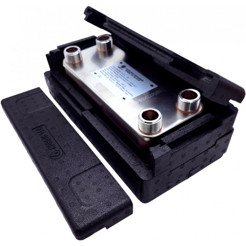 Schimbător de căldură cu 30 de plăci pentru sisteme de încălzire domestice sau industriale (încălzire centralizată sau apă caldă menajeră) sau pentru sisteme de răcire. Universal în ceea ce privește compatibilitatea cu diferite surse de căldură (pompe de căldură, șeminee, cazane pe combustibil solid, pe condensare, pe gaz și altele). Poate funcționa atât cu apă, cât și cu glicol (soluție de glicol).