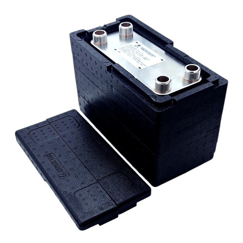 Schimbător de căldură cu plăci cu o putere de 390 kW pentru pompe de căldură Monobloc/Split (apă/apă sau apă/glicol), dar potrivit și pentru surse de căldură tradiționale, cum ar fi cazane mari pentru încălzire și producerea apei calde menajere.