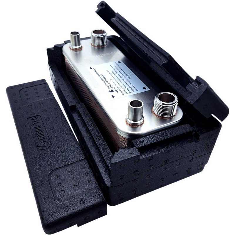 Schimbătorul de căldură pentru freon cu 34 de plăci este disponibil opțional și cu izolație, care crește eficiența transferului de căldură prin reducerea pierderilor termice în exteriorul dispozitivului. Puteți verifica variantele cu sau fără izolație în meniul de deasupra prețului produsului.