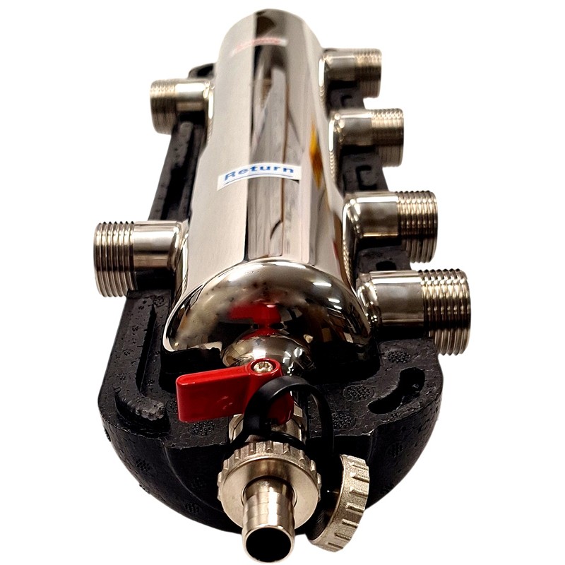 Acest dispozitiv permite separarea hidraulică a 2 circuite de pompare în instalațiile cu pompe de căldură. Separatorul pentru încălzire centralizată permite separarea circuitului de pompare a sursei de căldură (care nu trebuie neapărat să fie o pompă de căldură) sau a 2 surse de căldură independente într-un singur sistem de încălzire centralizată.