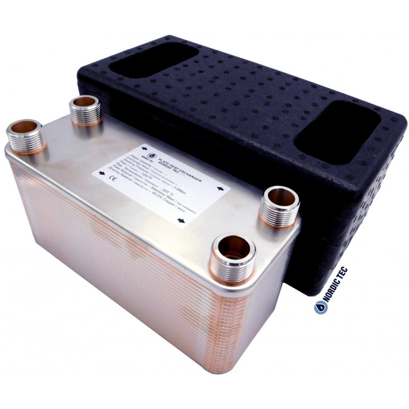 Schimbătorul de căldură cu 170 de plăci Nordic Tec Ba-115-170 – un schimbător de căldură brazat în vid pentru sisteme industriale de încălzire și răcire, cu o suprafață mare de transfer termic și racorduri de 2 1/2". Acesta nu este un schimbător de căldură pentru case unifamiliale.