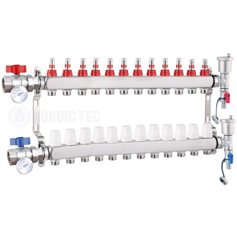 Distribuitor Nordic Tec INOX din oțel inoxidabil cu 12 circuite | 12 bucle de încălzire