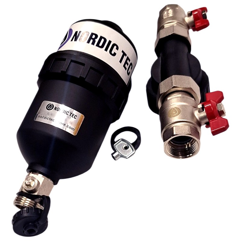 Filtrul anti-magnetită de 3/4 inch al mărcii Nordic Tec este un dispozitiv conceput pentru protecția instalațiilor de încălzire și a instalațiilor de apă împotriva contaminărilor și impurităților metalice sau corozive. Îndepărtează eficient pilitura metalică și particulele de rugină din apă, prevenind deteriorarea pompelor și supapelor, colmatarea schimbătoarelor de căldură, precum și protejând sursele de căldură sensibile, cum ar fi pompele de căldură sau cazanele moderne. Potrivit atât pentru sisteme cu circuit închis, cât și deschis.