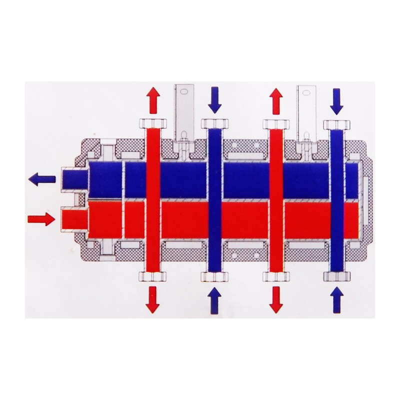 Dispozitivul este compus dintr-un distribuitor (pe partea primară) și un colector paralel pe partea secundară. Dispozitivul poate fi montat în orice poziție, însă se recomandă poziția orizontală, deoarece permite utilizarea aerisitorului și a supapei de golire.